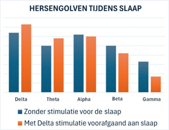 De Delta-slaap-hersengolven zijn bij het voorafgaand behandelen sterker tijdens zijn slaap. Terwijl de wakkere Beta/Gamma frequenties minder sterk zijn. Dus ook al blijft zijn slaapduur gelijk, de slaap zal na behandeling dieper en geneeskrachtiger zijn.